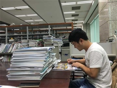 南图队员在整理记录书籍