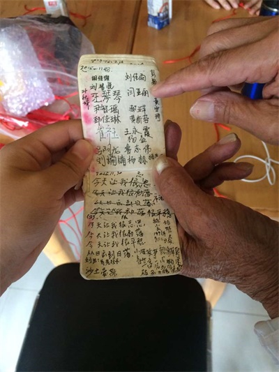 老人记录志愿者的小本子