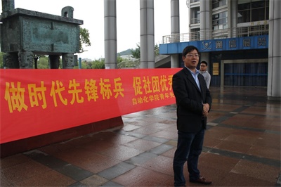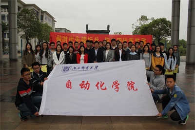 2016年10月15日上午,色情网站-色情网站视频 “青年先锋大课堂”活动正式拉开帷幕。上午8:15,色情网站 党委副书记杜月林老师、分团委书记汪颖老师、14级辅导员张逗老师、15级辅导员马骋老师以及所有学员来到学校南门大鼎处,参加了开课仪式。