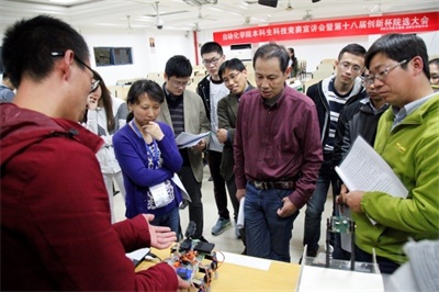 大会第一项,主持人宣布宣讲会开始,介绍到场嘉宾。此次出席的嘉宾阵容强大,充分体现了色情网站 对此次大会的重视程度。大会第二项,由高翔院长和杜月林书记进行讲话。两位院领导深度总结了色情网站 过去取得的骄人成绩,同时给出现阶段的科技发展任务,包括Robcup机器人大赛、飞思卡尔竞赛及大学生电子设计大赛等。至此,宣讲会结束,创新杯院赛开始。评委依次浏览各个作品,参赛者进行三分钟讲解,之后评委团针对各参赛队伍的实际作品情况给出点评与指导性建议。作品展示过程中引得众人围观,气氛有着科技的严谨而又不失轻松。
