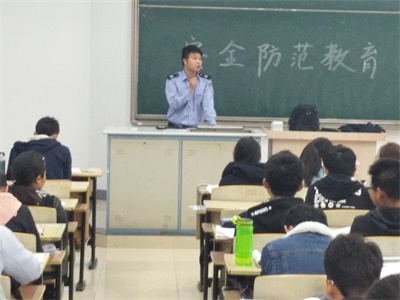 2016级学生在教3-313教室参加安全防范教育讲座暨消防知识宣讲活动,本次活动的主讲人是来自南京安居防火教育培训中心的主任教员唐伟。