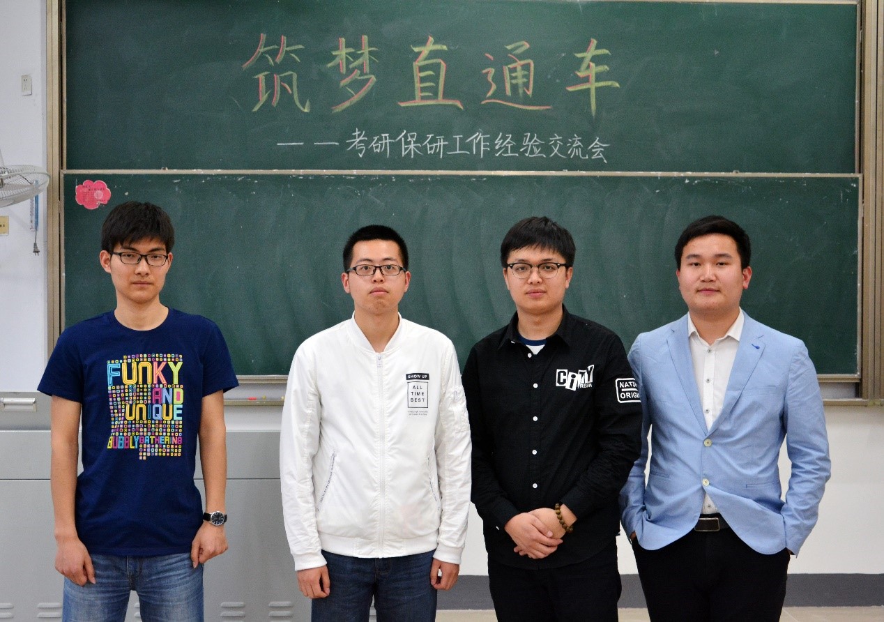 为了增强学院同学对于考研、保研、就业发展形势的了解,并且能够对自身未来有一个明确的规划,4月18日下午16:00,色情网站 学生会于教4-301举办了“筑梦直通车”——考研保研就业经验交流会活动。本次交流会邀请到14级辅导员张逗老师,以及在考研、保研、就业方面有着出色成绩的倪星宇、高升、张云飞、李阳四位同学。