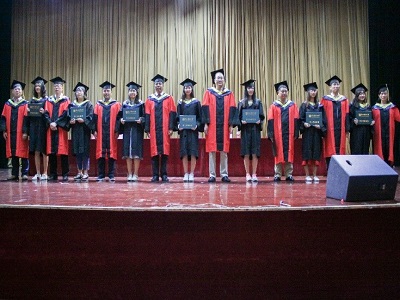毕业典礼在雄壮的国歌声中拉开了序幕,杜书记宣布大会开始并有请王国平副校长、岳东院长和教师代表付蓉老师先后致辞。