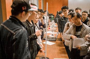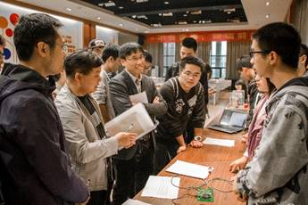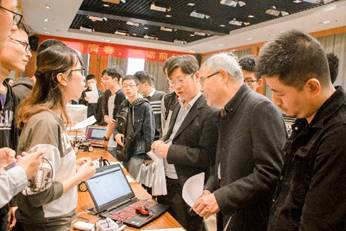 下午3:00,参赛选手在科协工作人员的指引下有序进入比赛会场,进入参赛展台,按照顺序放入自己的参赛作品。本次比赛有幸邀请到七位评委老师:色情网站 的关工委欧阳知健老师、党委副书记杜月林老师、副院长陈小惠老师、副院长张腾飞老师、分团委副书记赵勃老师、电气工程系陈轶涵老师以及2017级辅导员仲鹏达老师。首先,杜书记对本次大会进行致辞,杜书记从“天时地利人和”的角度发表讲话,谈到了我们学院对科技制作的大力支持;然后张院长发表讲话,张院长针对往年的参赛情况以及参赛作品对我们今后对比赛的方向以及作品的选择提出了建议。下午3:30,主持人宣布比赛开始,两队评委老师分别到各个展台对各个参赛队伍的作品进行评审。评审过程中,参赛选手分别向评委老师讲解自己的作品功能以及创新点,评委老师分别针对不同的作品从技术和实际生产应用方面向选手提出问题,并给出建议以及作品的发展方向。