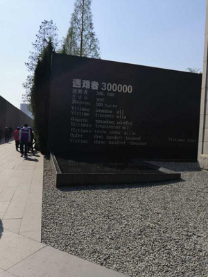 纪念馆地上都铺上一层鹅卵石,光秃秃一片,荒凉、颓废,给一种悲凉的氛围,正对门,一个巨型雕塑,写着“南京大屠杀纪念碑”,印入眼帘,让人心生凄凉。远处,一个巨大的吊钟静穆地立着,有人说是象征着和平的“和平钟”,在我们看来,更像着一个警示钟,警示着国人:落后就要挨打、软弱就要被欺。 走进纪念馆内,光线阴沉昏暗,黑黝黝的如入鬼蜮,1937年12月13日,惨绝人性的南京大屠杀在此,70多年之后,来到此地,仿佛还能嗅到空气中弥漫着屠杀的血腥气,仿佛还能听到被屠杀时手无寸人们的哭声一片,还能看到一个个为人父人妻人母人子女的人一个个倒在血泊之中。B180404团支部成员在参观完纪念馆之后,每个人都宣誓要努力学习知识,培养自己的科学素养,做有志有为的中国少年,为自己的祖国贡献自己的力量,让伟大的祖国更加强大,永不放弃梦想的执着与追求。