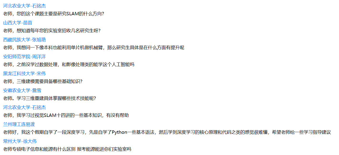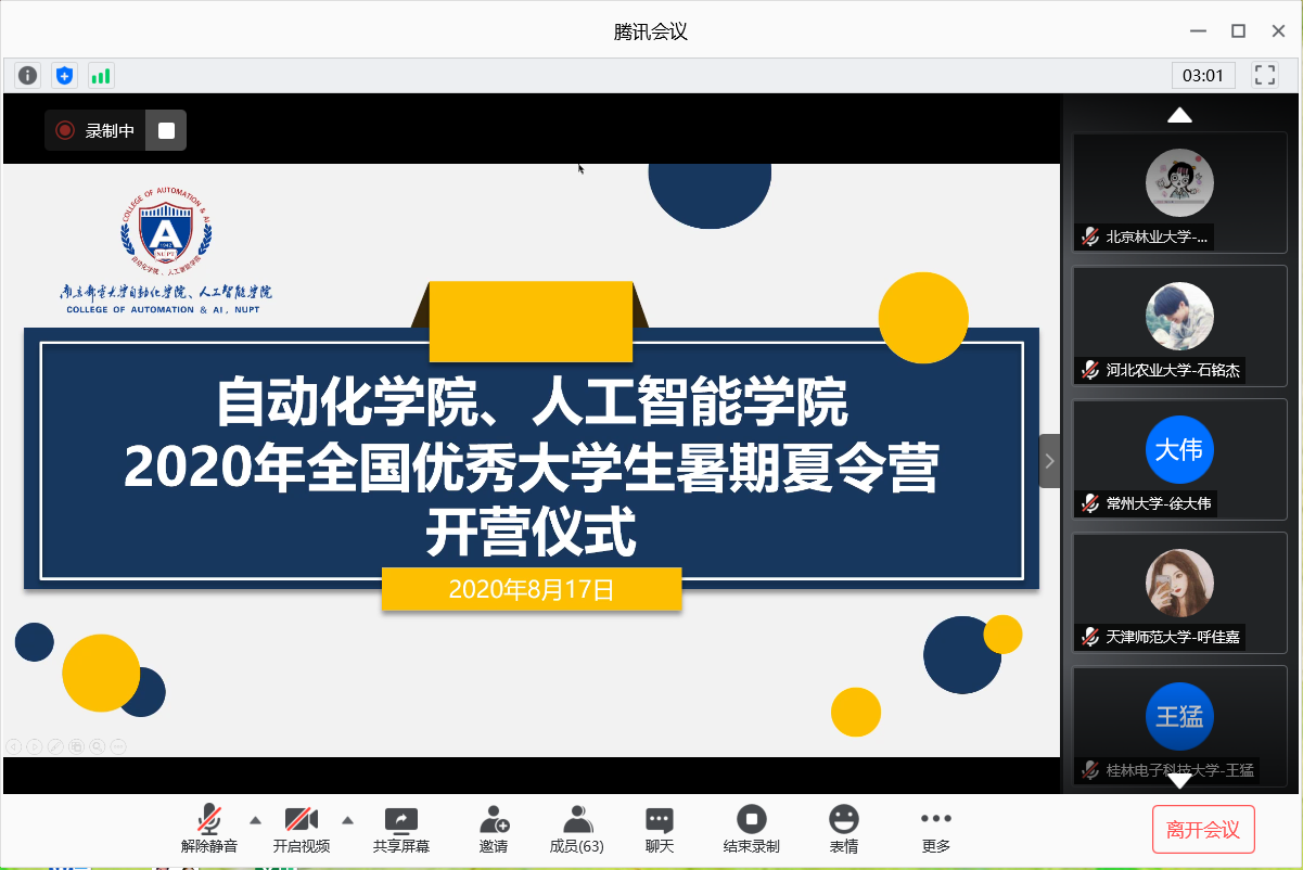 讲座结束后,张院长鼓励各位同学要勇于展现自己,希望同学们能够畅所欲言,在张院长的鼓励下,不少同学打开摄像头介绍自己,并且将自己的想法和疑惑一一道来,张院长秉持着“知无不言,言无不尽”的态度耐心地回答每位同学的困惑,气氛也在不断的交流中变得活跃起来。最后,张院长希望同学们能充分利用在夏令营中学到的知识,将两天的夏令营活动当作一个好的开始,继续向着目标前进,期待明年与同学们在南邮,在色情网站 、人工智能学院再次相聚。