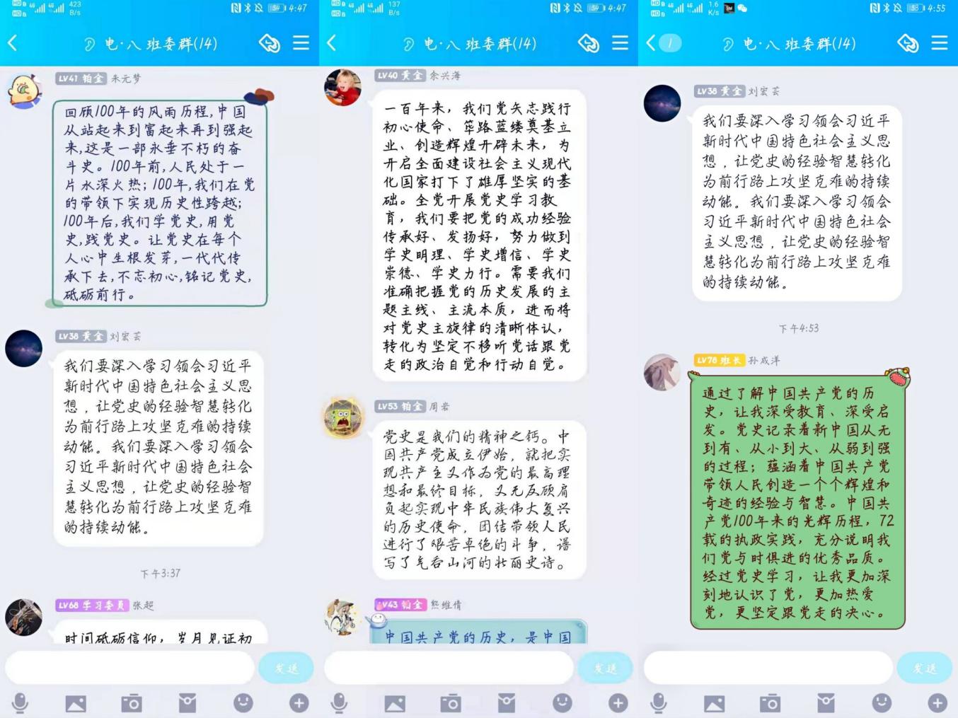 4月14日下午,各支部组织同学们观看“学党史 强信念 跟党走”——百年党史青春说直播。党史不光是一本本书、一盒盒档案,党史里还有一个个鲜活的生命、一篇篇催人奋进的故事,从中我们可以汲取到磅礴的力量。直播结束后,同学们对党史都有了更加深刻的感悟与见解。