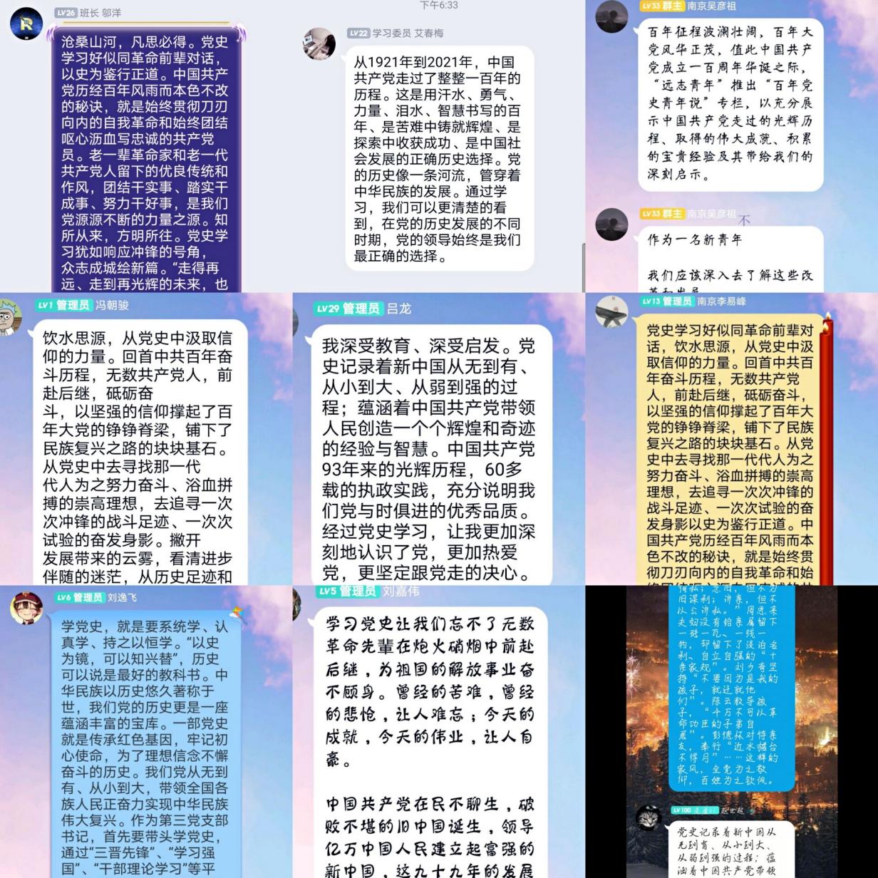 作为南邮学子,我们应该积极响应党组织的号召,认真学习党史,激发作为青年团员的爱党爱国热情,积极践行社会主义核心价值观。在党史中汲取磅礴的力量,不懈奋斗;以奋斗之我,成就更好的中国!