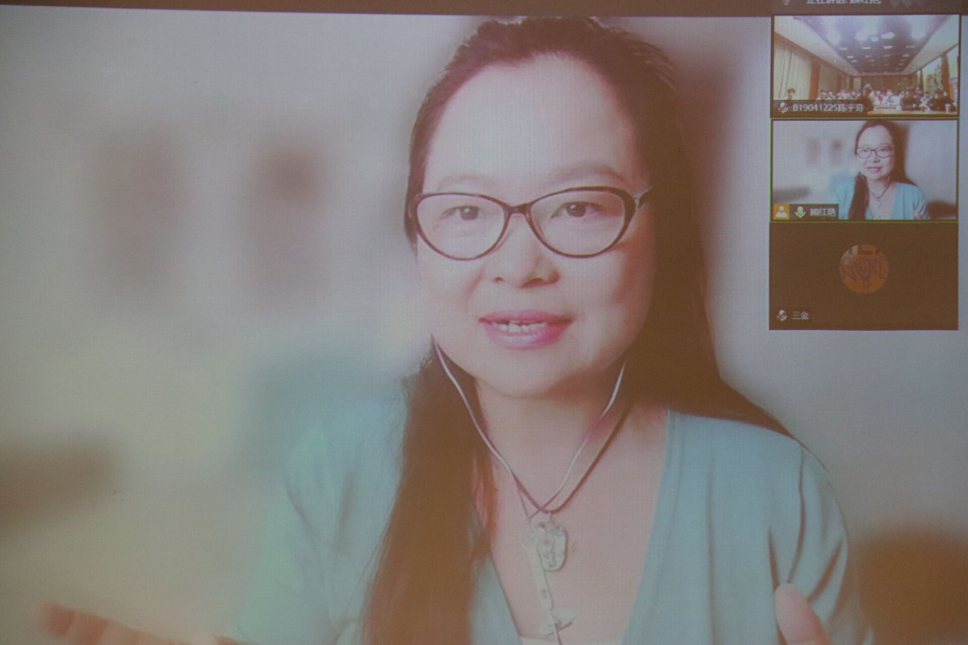 “顾学姐”通过连线潘老师以线上交流会的方式跨越了中英两国的距离与时差,讲述了自己不断跨界跳槽,最终找到心中理想的别样经历后,又分享了现在繁忙充实而又充满意义的美好大学生活,同时,介绍了曾经打卡世界各地的文化遗址的照片。我们深切地感受到了顾红艳“学姐”时刻充满正能量的积极生活态度,潘老师也打趣说,“顾学姐”是他们的“开心豆”。