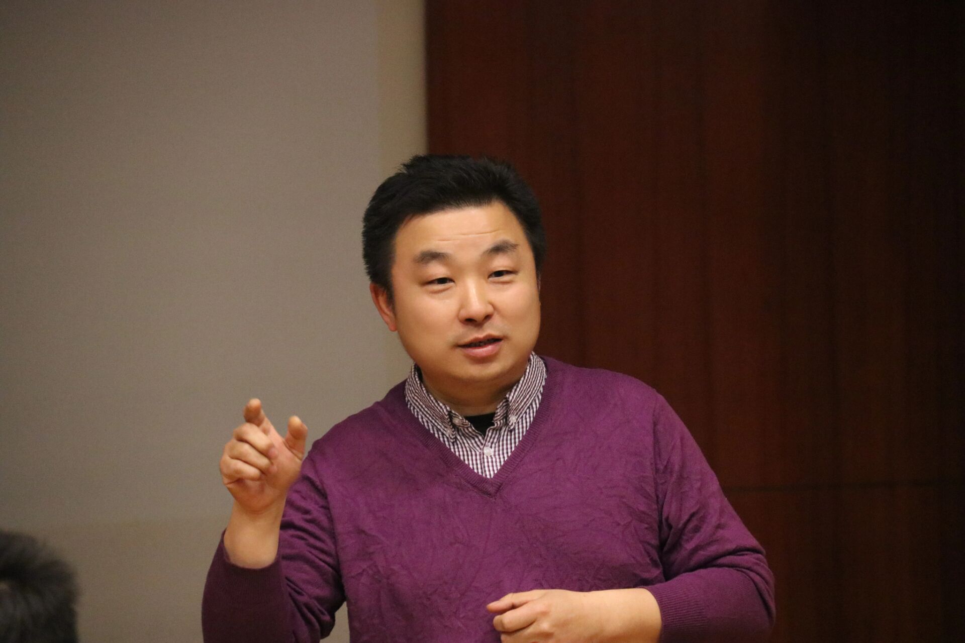 本次活动邀请了顾红艳女士和潘志刚老师,学院大一大二学生共计30余人来到活动现场,2019级仲露同学担任主持人。