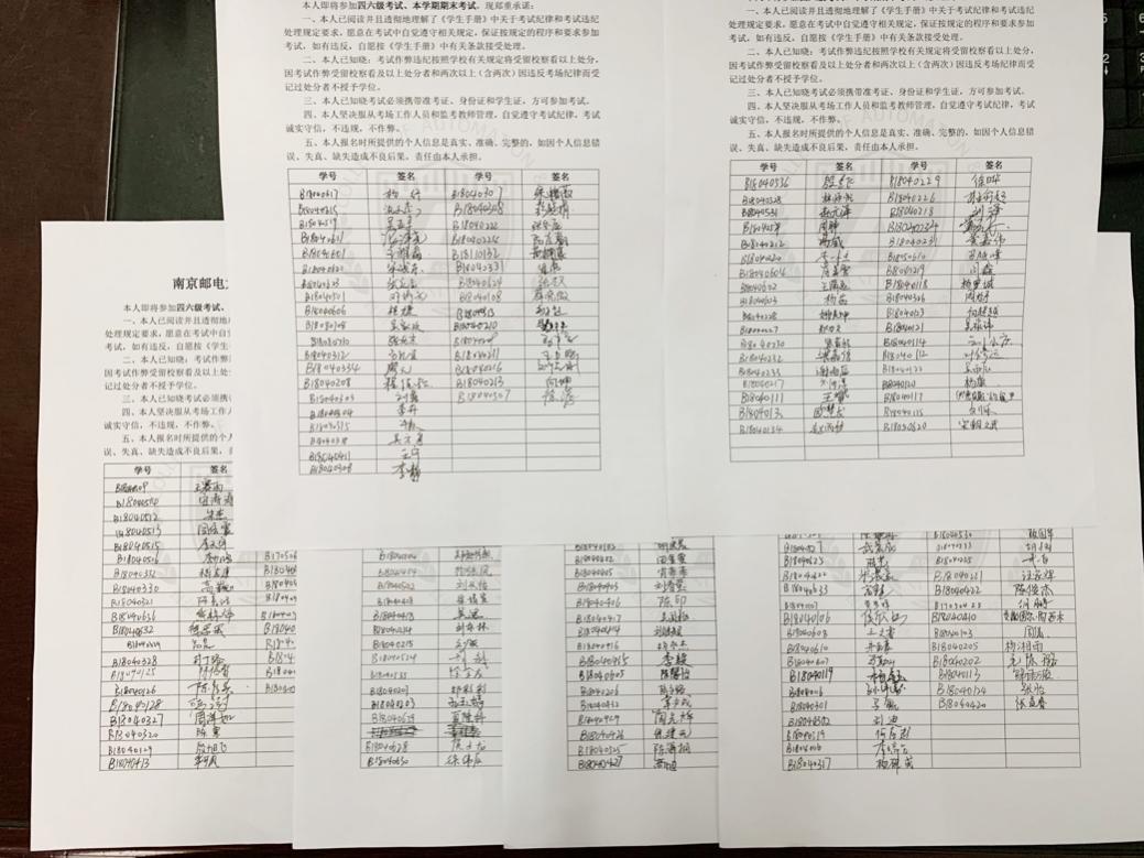 各班级采用线上线下相结合的方式,组织班委、学生干部领学、抽查、宣读《学生手册》、《考试纪律和考试违纪处理规定》、《本科毕业生学士学位授予办法》等文件中有关规定,提醒所有同学《刑法修正案(九)》新增了“替考罪”,替考入刑进入实质性阶段。同时组织收看诚信应考宣传动画,并签署诚信考试承诺书。