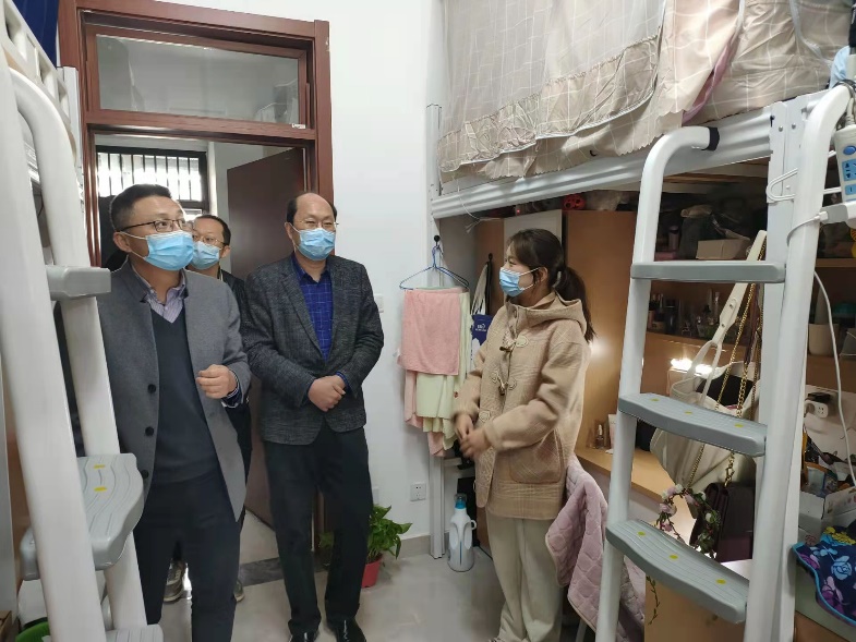 近日,为进一步落实学校疫情防控要求,了解学生线上学习效果,关心学生生活情况,学院党委书记张翼、院长岳东、党委副书记孙委委、副院长王强、徐丰羽、丁磊深入学生宿舍、研究生教研室,开展关心慰问、谈心谈话工作,全体辅导员陪同走访。