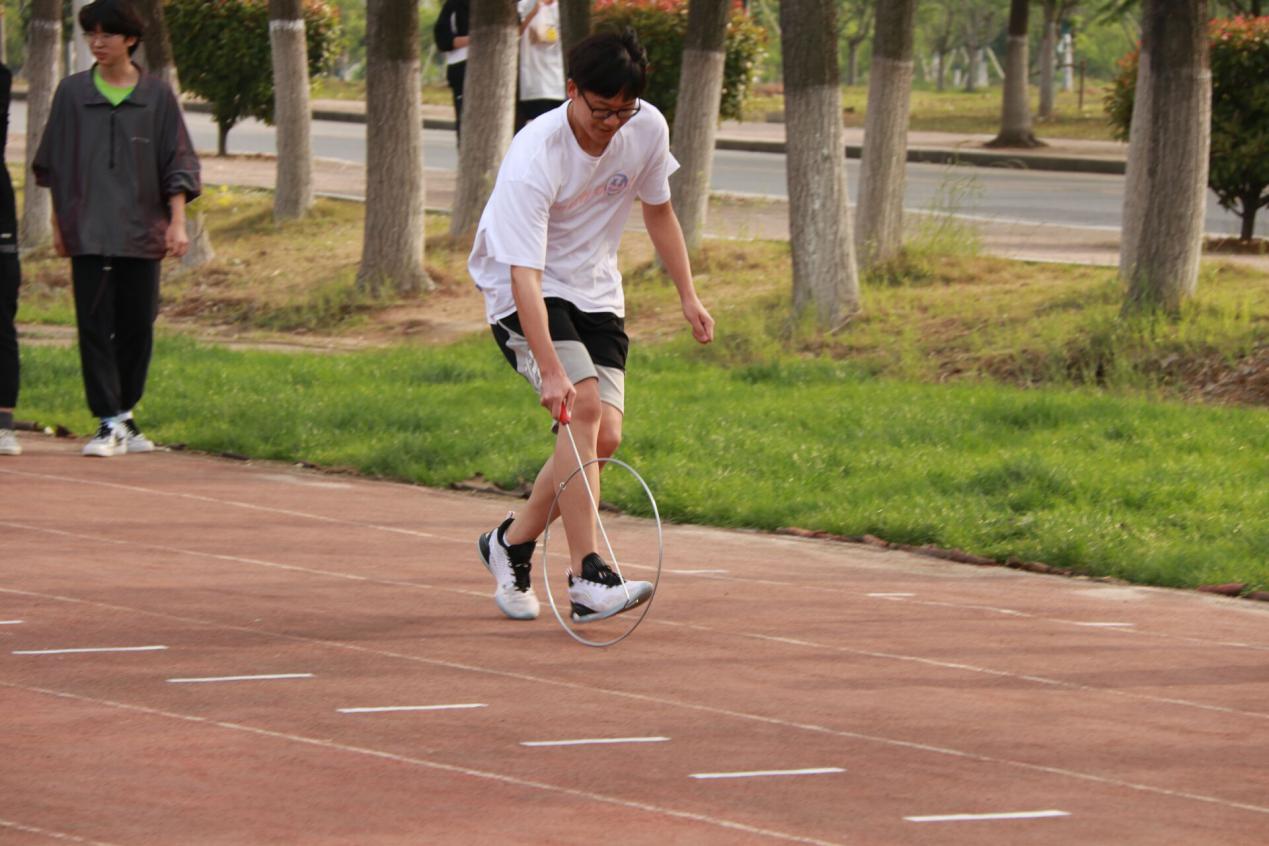 第三个游戏——跳长绳。两人摇绳,其余队员列队需从绳的一侧跳至另一侧,跳过的队员在同侧另一端排队,循环接替。跳绳队员依次进入且必须在进入后成功跳绳一次,方计次数一次。在比赛过程中,参赛选手们都打起了十二分的精神,狭路相逢勇者胜。有的队伍配合默契;有的队伍跌跌撞撞完成比赛,但没有一个队伍半途而废。大家相互合作,相互鼓励,富有节奏地跳动着。整场比赛精彩纷呈,展现了团结的力量,青春的活力。